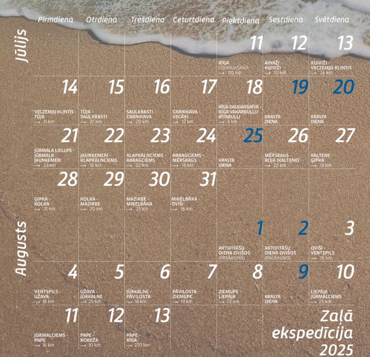 P.S. Novada pludmalēs ekspedīcija viesosies laikā no 22 līdz 24. jūlijam.