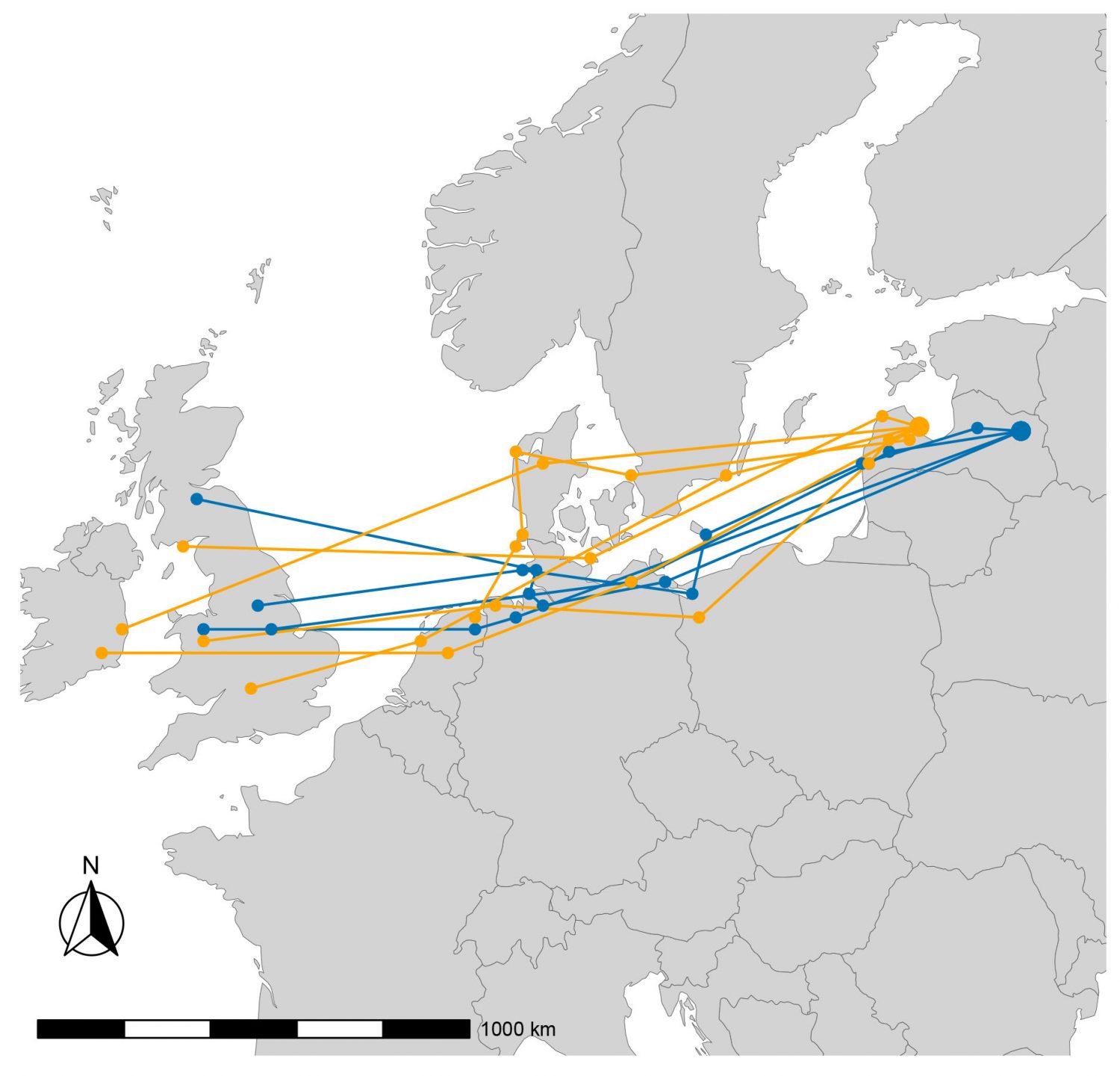 Pēc 2020. gada ligzdošanas sezonas 2021. gadā mēs atkārtoti noķērām 11 no 10 ar ģeolokatoriem aprīkotajiem 70 mājas strazdiem: 7 no tiem Engures, bet 4 – Gulbenes parauglaukumā. Pirmie rezultāti no pētījuma parādīja pārsteidzošu atšķirību, ka starpmigrāciju uzreiz pēc ligzdošanas veic tikai visi Gulbenes parauglaukuma mājas strazdi – tas nozīmē, ka tie ligzdošanas vietu atstāj uzreiz pēc mazuļu izlidošanas jau jūnija pirmajā pusē un aizlido vismaz 250 km tālu. Turpretī gandrīz visi Engures ezera apkārtnes strazdi paliek Latvijā līdz pat oktobrim – novembrim un tikai viens no septiņiem veica starpmigrāciju. Tas ir jauns atklājums, kas liecina, ka tikai daļa Latvijas strazdu ir pametuši Latviju uz “ķiršu laiku” – pirms tam tika uzskatīts, ka visi mūsu strazdi atstāj ligzdošanas vietas jau jūnijā. Pētījumi par mājas strazdu enerģētiku un aktivitāti turpinās. Par turpmākajiem pētījuma rezultātiem laikrakstā ziņosim pēc gada, kad būs izanalizēti arī 2022. gadā noķerto strazdu dati