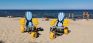 Peldošais pludmales ratiņkrēsls ir aprīkots ar trim pludiņa tipa riteņiem, un tā roku balsti ir veidoti kā glābšanas bojas, kas nodrošina ratiņkrēsla peldētspēju. Viena ratiņkrēsla kravnesība ir 115 kg, un papildus drošībai tiek nodrošinātas arī glābšanas vestes.