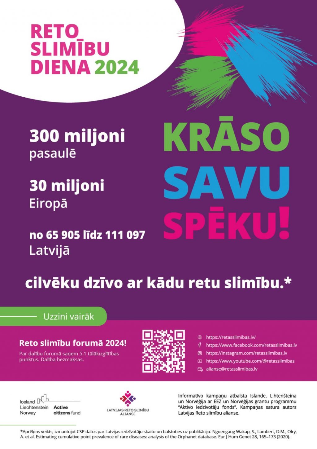 Kampaņas “Krāso savu spēku!” noslēgumā 29. februārī, kas ir starptautiskā Reto slimību diena, Rīgas Stradiņa universitātē notiks “Reto slimību forums 2024”, kas būs pirmais šāda mēroga izglītojošs pasākums, apvienojot veselības aprūpes speciālistus, lēmumu pieņēmējus, cilvēkus ar retām slimībām un viņu tuviniekus.