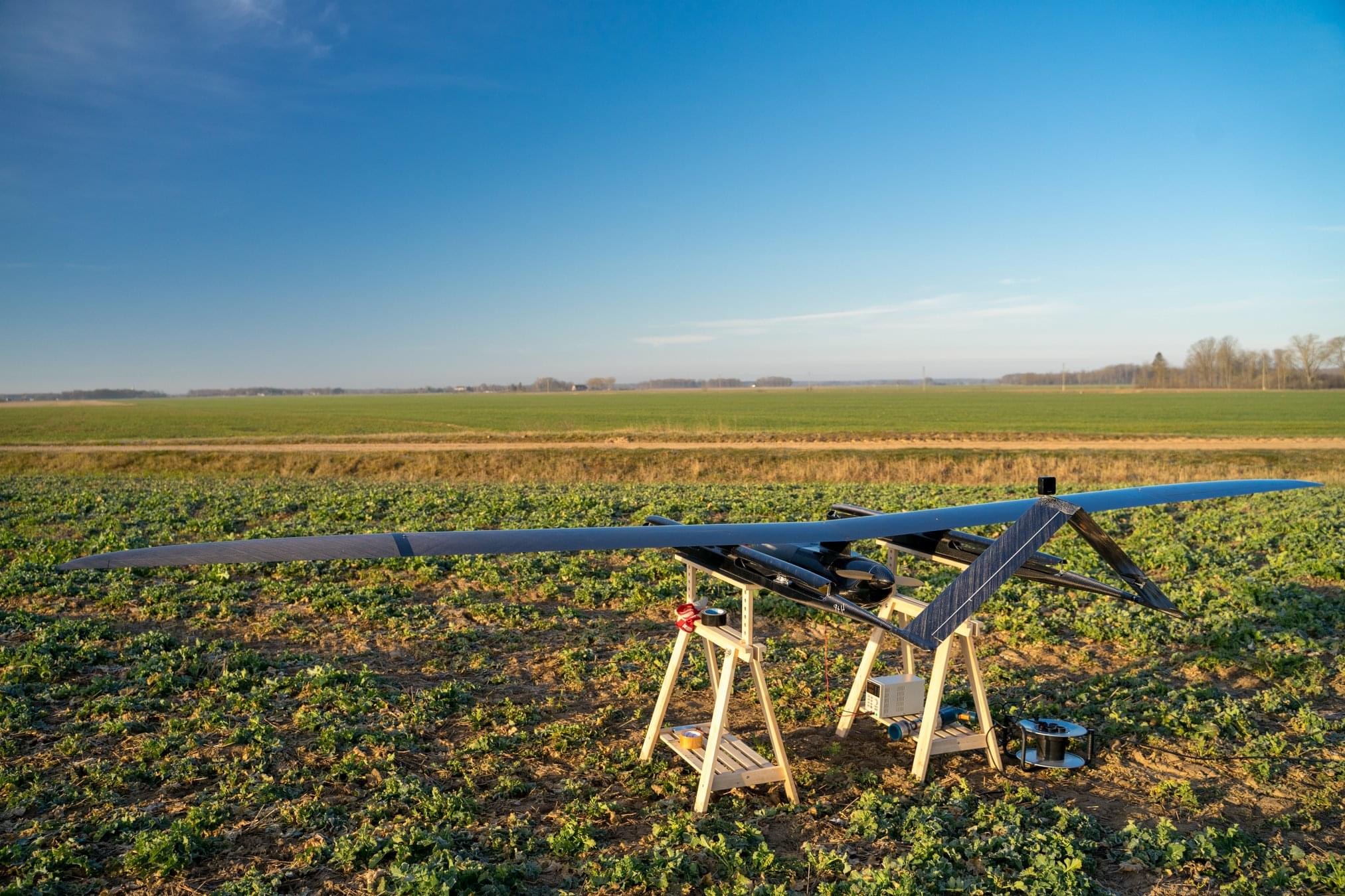Lidojošā drona izmēri ir 3,5 x 5,5 metri, bet tā svars – 26 kilogrami. Drona lidojuma ātrums ir aptuveni 70 km/stundā.
