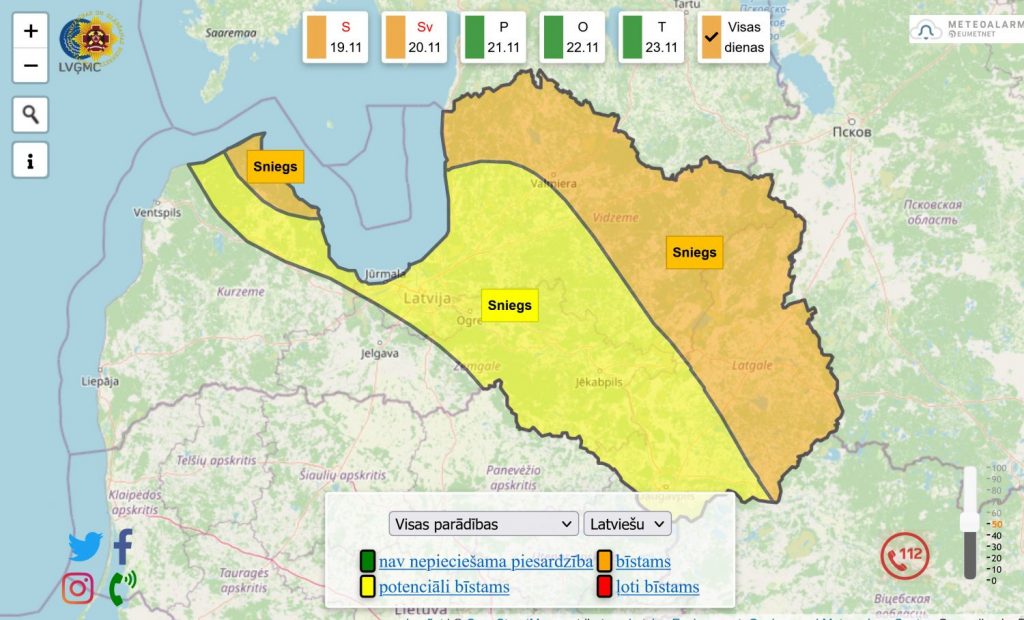 Kā liecina Latvijas vides, ģeoloģijas un meteoroloģijas centrs, naktī no 19. un 20. novembri Latvijā gaidāma stipra snigšana. Un karte liecina, ka sniega sega ievērojami varētu palielināties arī Tukuma novada jūras piekrastē.