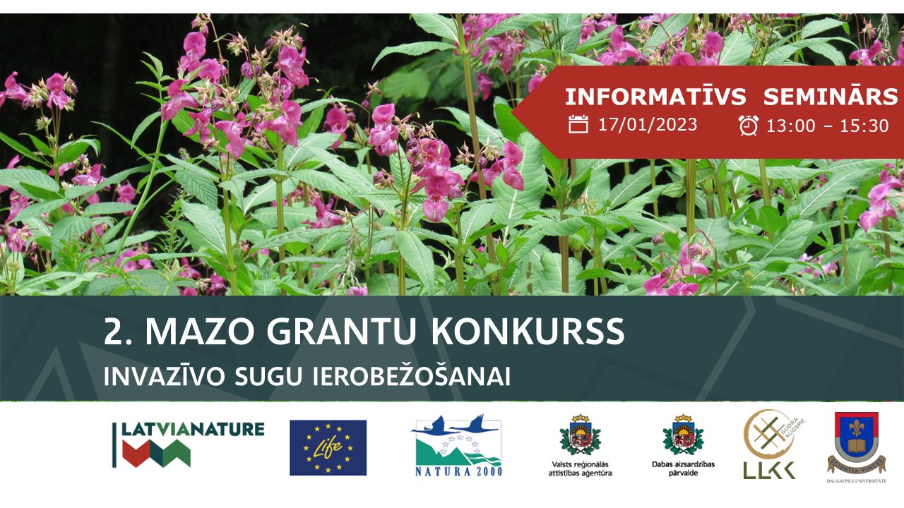 Atgādinām, ka šajā mazo grantu konkursā atbalstu piešķir iedzīvotājiem, uzņēmējiem un sadarbības grupām, ieskaitot pašvaldības, kas savā vai pārvaldībā esošajā īpašumā vēlas ierobežot invazīvās sugas. Otrajā mazo grantu programmā kopējais atbalsta finansējums ir 30 000 EUR, vienam projektam paredzot no 1000 līdz 5000 EUR. Konkurss notiks projekta LIFE-IP LatViaNature ietvaros.