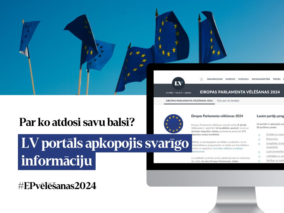 8. jūnijā notiks Eiropas Parlamenta vēlēšanas. Lai veicinātu lasītāju informētību par gaidāmajām vēlēšanām, kā arī lai palīdzētu izvērtēt partiju solījumus, LV portāls apkopojis aktuālāko informāciju atsevišķā sadaļā “Eiropas Parlamenta vēlēšanas 2024”. Ko dara Eiropas Parlaments, kādus jautājumus lemj Eiropas Savienība un ko dalībvalstis nosaka pašas nacionālā līmenī? Uzzini LV portālā!