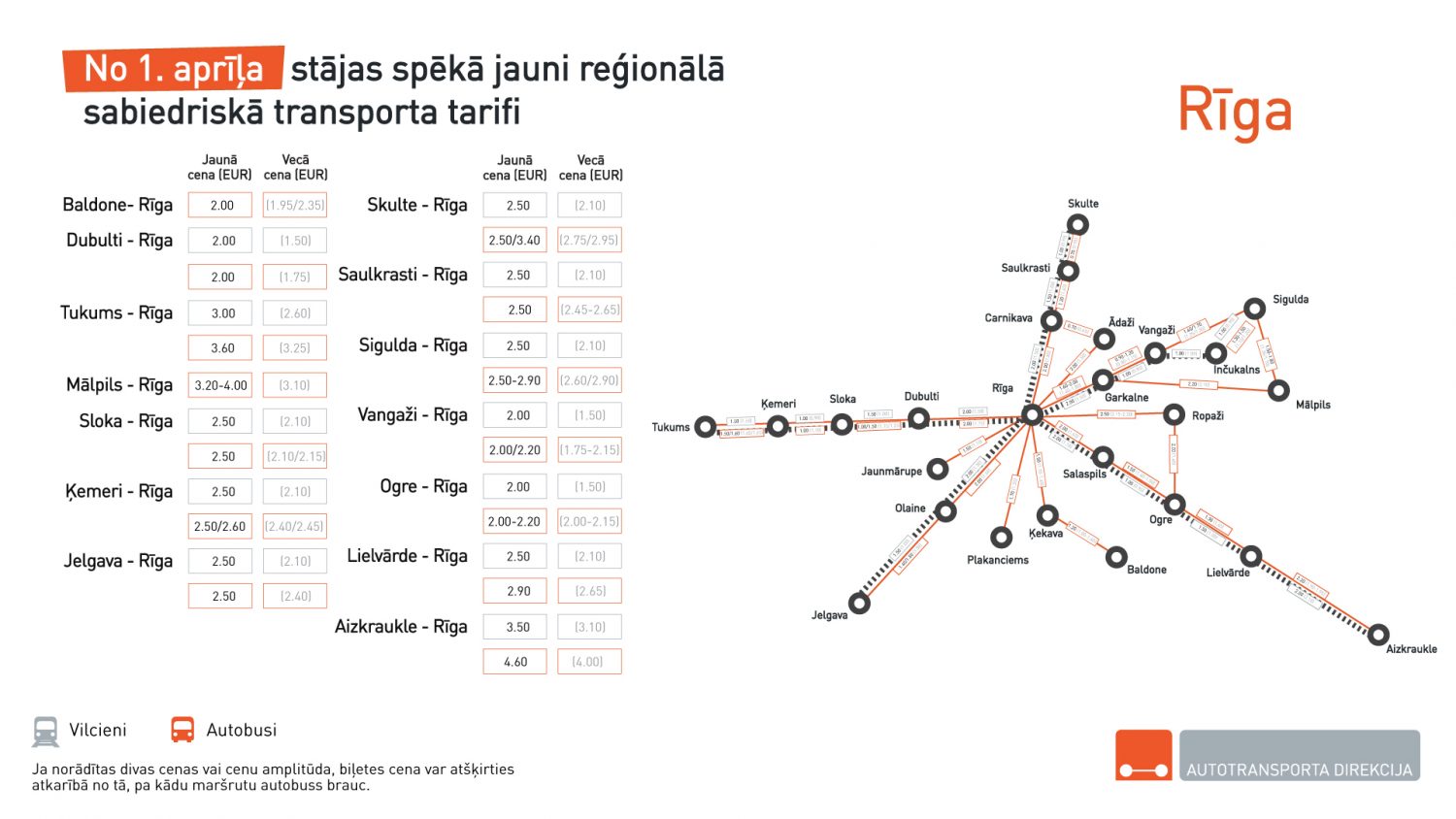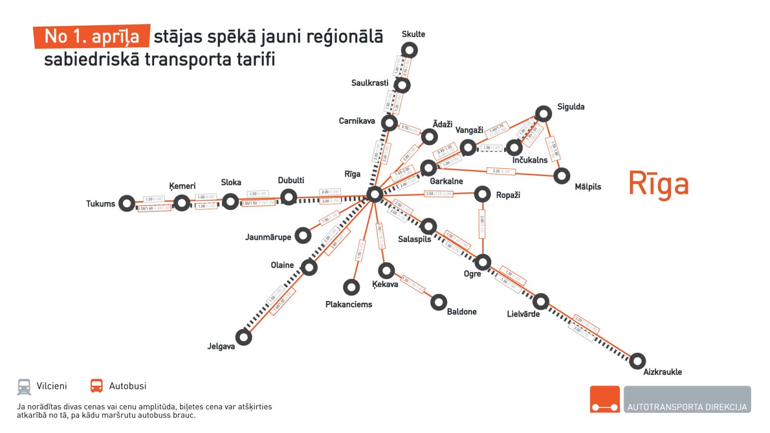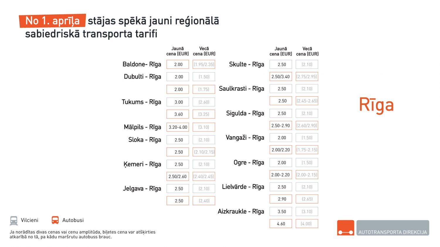 Jaunas biļešu cenas autobusiem un vilcieniem