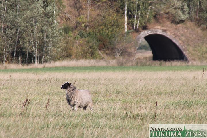 Redakcijā saņēmām informāciju, ka jau ilgāku laiku – vairākas nedēļas – pļavā pie  Rīga-Ventspils šosejas ganās vientuļa aita.  Braucām izlūkot situāciju, un – tiešām! –  norādītajā pļavā sastapām aitu, kas, ja ne tās melnā galva, pilnībā saplūstu ar rudenīgo smilgāju. Lopiņš šķita ieinteresēts par to, ka viņa teritorijā ieklīdusi vēl kāda dzīvā radība, tomēr pietuvoties neatļāva. Tik vien, kā mazliet nopozēja un laida vaļā ļekas.