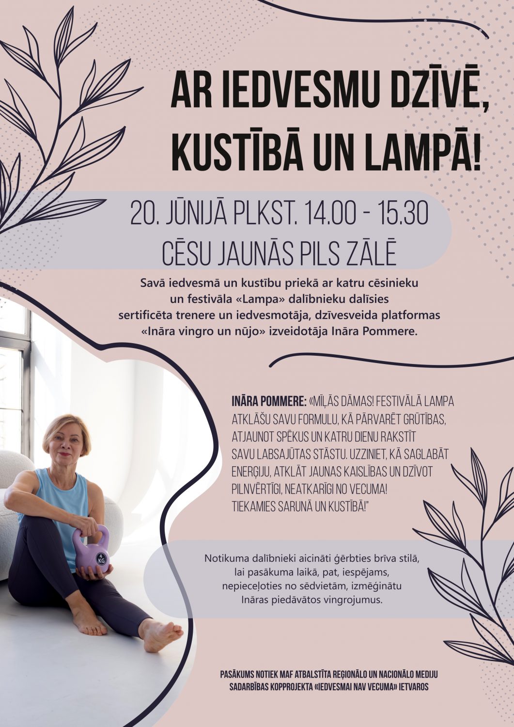 Rīt, 20. jūnijā, Cēsīs sākas sarunu festivāls LAMPA, un šogad tajā aktīvi iesaistījusies arī mūsu laikraksta redakcija – «Neatkarīgās Tukuma ziņas». Tā realizējot vairāku redakciju kopprojektu «Iedvesmai nav vecuma», Cēsu Jaunās pils zālē no 14.00 līdz 15.30, organizējam tikšanos un nodarbību kopā ar treneri un pieredzējušu iedvesmotāju Ināru Pommeri. Savukārt 17.00 Reģionu skatuvē redaktore Ivonna Plaude vadīs diskusiju «Reģionālais medijs – joprojām kopienas balss, balsts un atbildīgs politisko spēku līdzsvarotājs?».