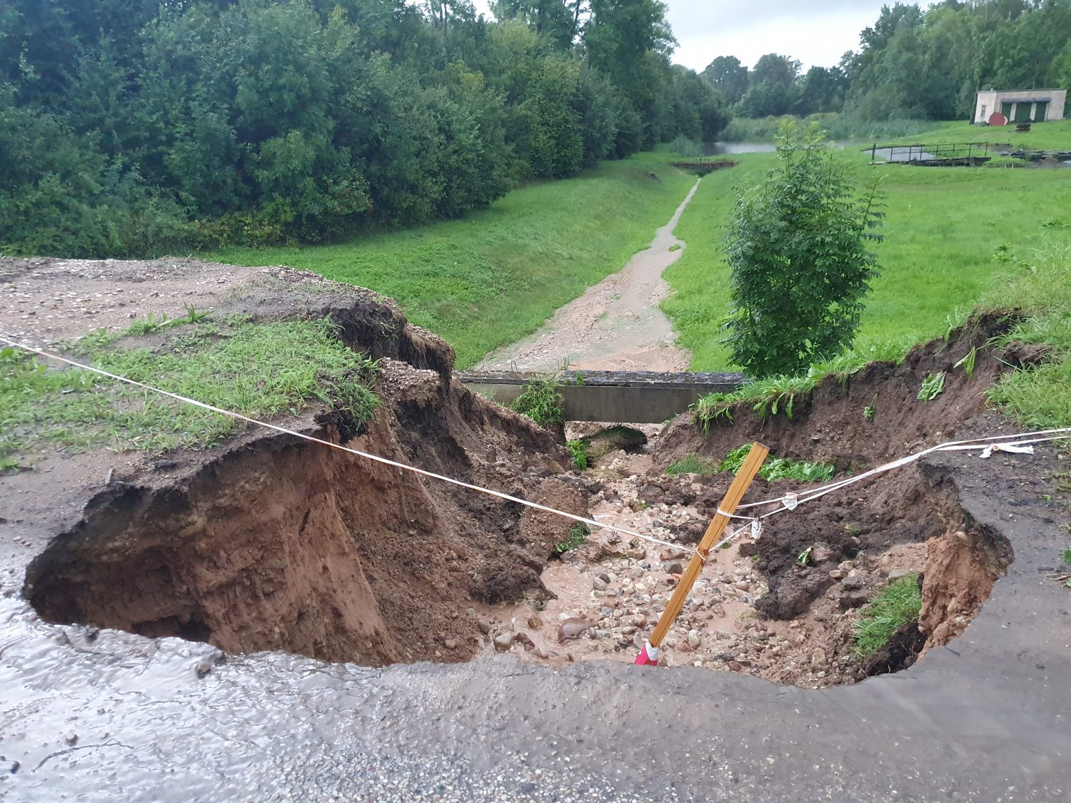 Par izskalojumu pie Tumes dīķa varam pateikt paldies Komunālservisam TILDe - par to, ka laikus nenovērsa tur radušos problēmu, tur izskalojums jau vairāk kā nedēļu bija, taču neviens nelikās ne zinis, uzlika mietiņus informatīvi un viss ar to beidzās. Tagad, lai uzņemas atbildību un veic nu jau nopietnus remontdarbus.