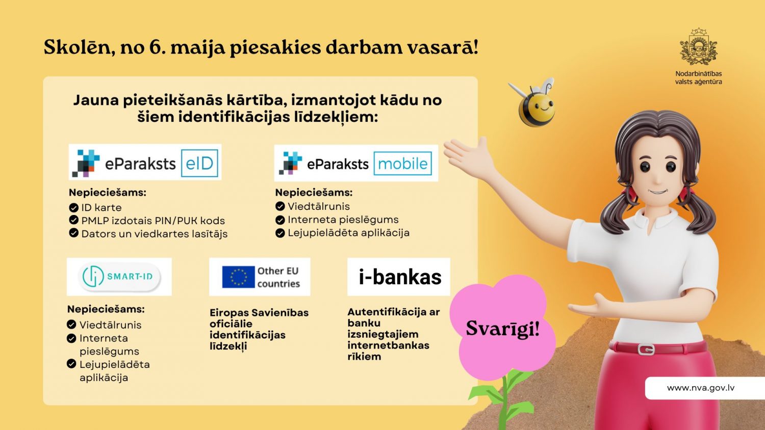 NVA CV un vakanču portālā skolēnam būs jāaizpilda pieteikuma anketa, norādot mācību iestādi, kurā tiek vai šogad tika iegūta izglītība, un kontaktinformāciju saziņai ar NVA. Jautājumu gadījumā aicinām zvanīt uz NVA bezmaksas informatīvo tālruni 80200206.