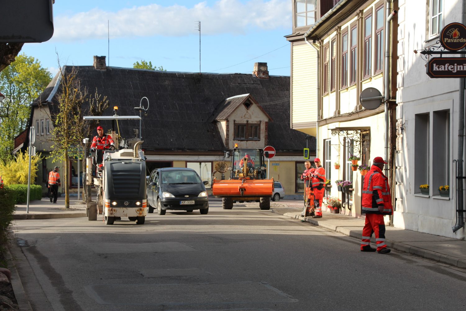 Šodien, 16. maijā, SIA «Strabag» Tukumā turpina bedrīšu remontu . Darbi noris arī Brīvības laukumā.