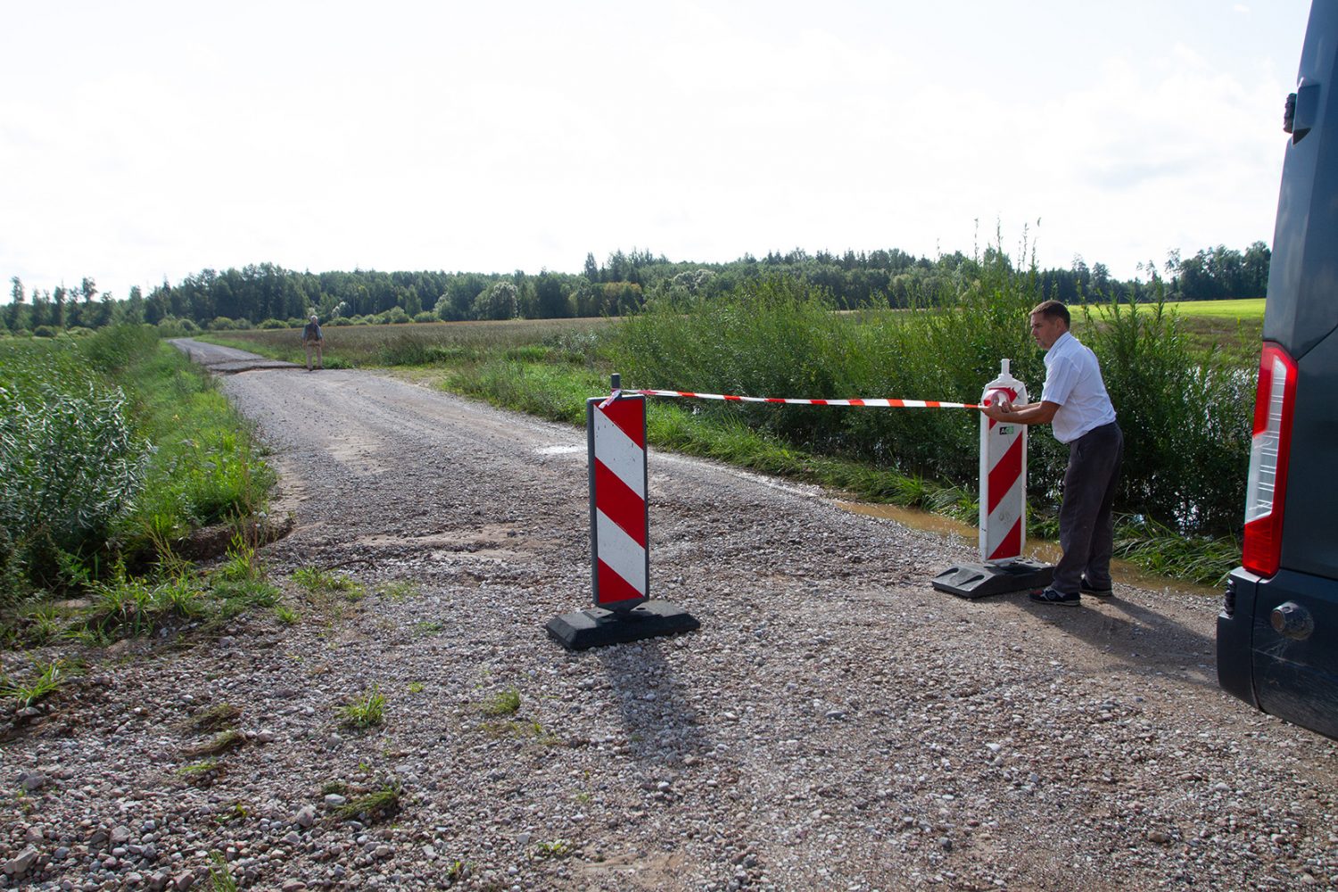 Jāpiebilst, ka, jau braucot uz Praviņām, vairākas vietās pamanījām lietus sekas – nelielus dīķus lauku malās, vietām blakus meliorācijas akām. Redzams, ka grāvji, kas citkārt aizauguši nezālēm, tagad ir ūdens pilni, un zemākās vietās dažviet izskalojuši ceļus, bet ne tik lielā apjomā, kā Vašleja. Tiesa gan, kā stāstīja Guntis Jansons un Aldis Neimands, kas notikuma vietā uzlika brīdinājuma zīmes, lai kāds nejauši neiebrauktu upē, pavasarī situācija bijusi līdzīga, un arī toreiz ceļš ticis slēgts.