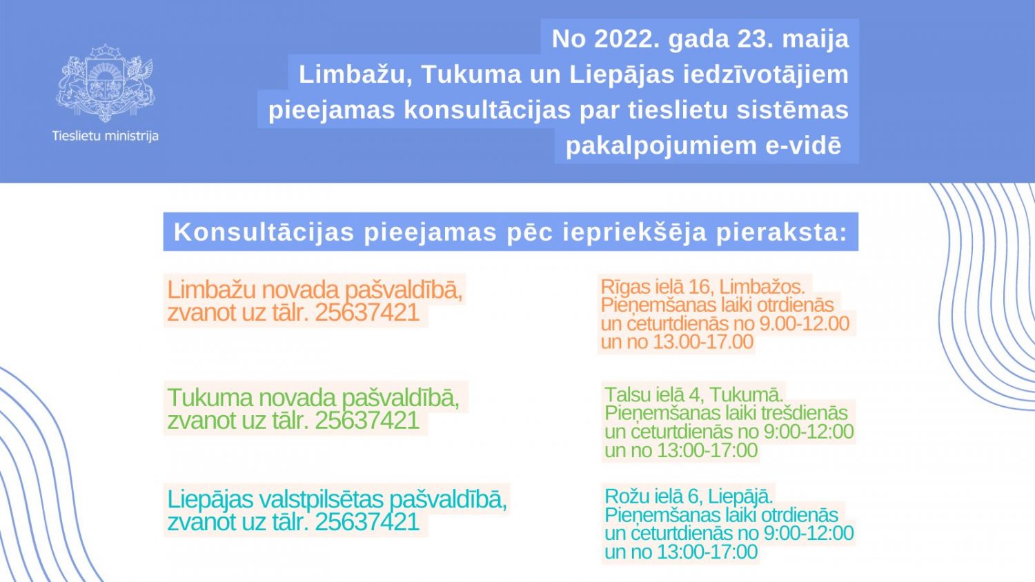 Konsultācijas pilotprojekta ietvaros tiek organizētas pēc iepriekšēja pieraksta zvanot uz tālr. 25637421 šādās pašvaldības vietās un apmeklētāju pieņemšanas laikos: