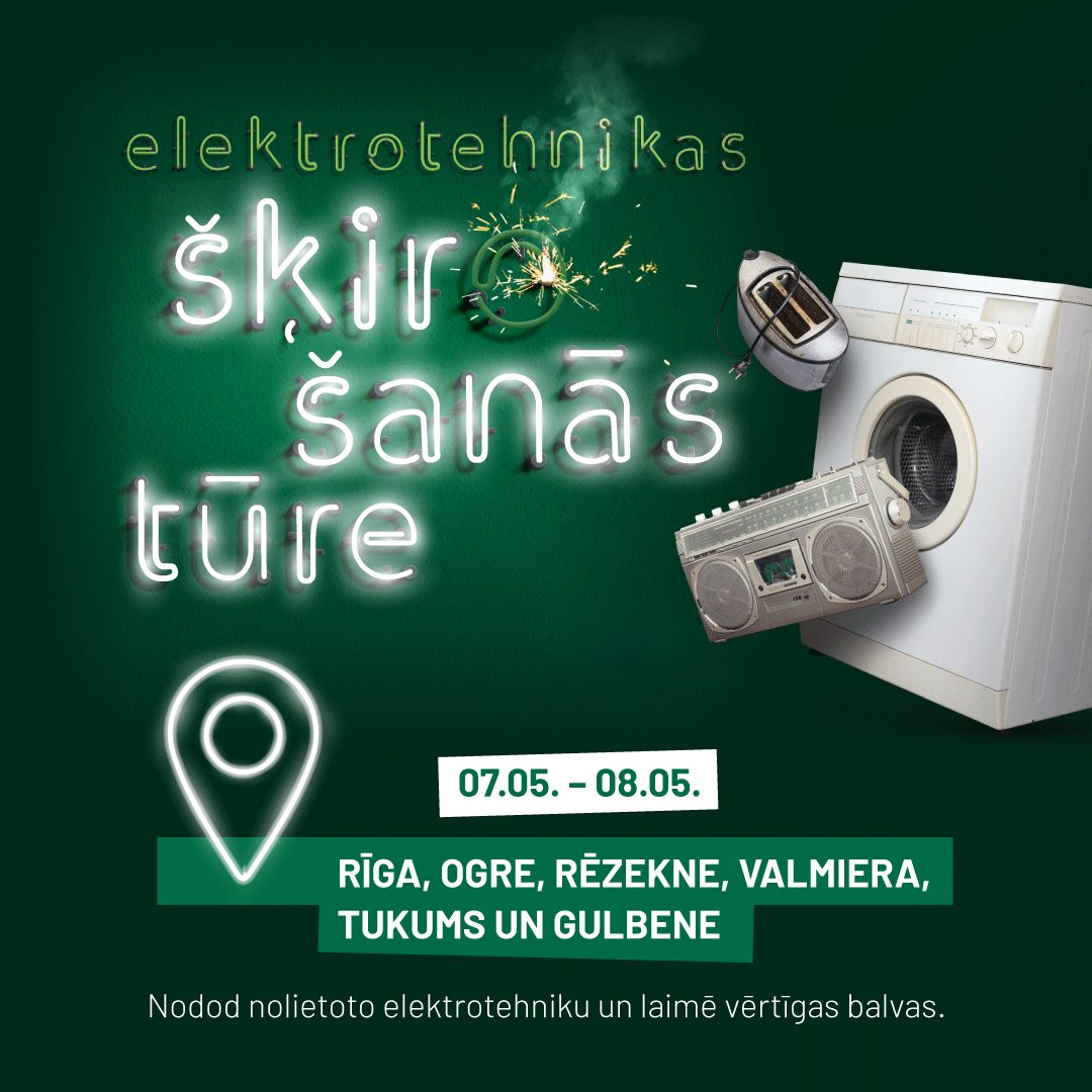 Vairāk par šķirošanas kampaņu “Elektrotehnikas šķirošanās tūre” lasi Latvijas Zaļā punkta mājas lapā www.zalais.lv sadaļā “Jaunumi”. Jautājumu gadījumā par akcijas norisi aicinām sazināties, zvanot pa tālr. 26626165 vai rakstot uz e-pastu elektronika@ecobaltiavide.lv.