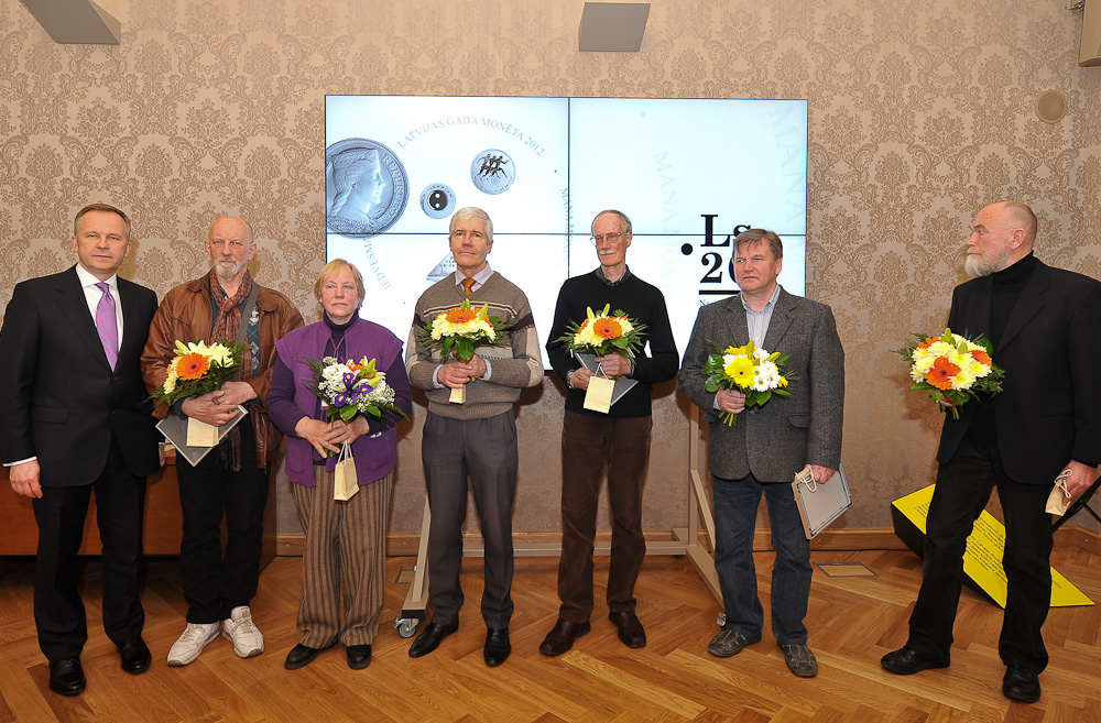 Šodien tika nosaukta arī gadskārtējā aptaujā noskaidrotā «Latvijas gada monēta 2012» – par to kļuva 2012. gadā atkārtoti nokaltais mākslinieka Riharda Zariņa «Sudraba pieclatnieks».