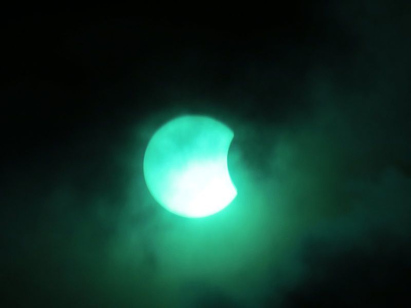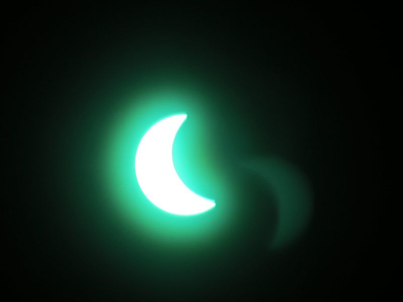 Somu masu medijos izlasīju,ka uz sauli drīkst skatīties caur metinātāju aizsargstiklu DIN 14.Turpat bija piebilde ka tāda Nr. veikalos arī nav. Sakarā ar lielo pieprasījumu visi stikli esot izpirkti.Haminas saimniecības (tehnikas) veikalā, par laimi bija DIN 10. Nopirku divus.Saliekot kopā varēja droši skatīties un fotogrāfēt. Tāpēc tāda zaļa krāsa.