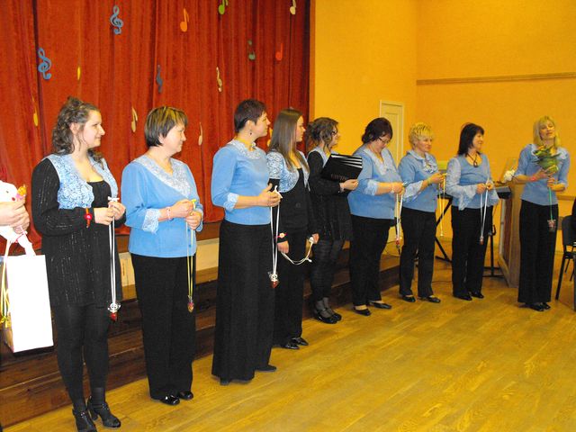 Bet uztraukumam nebija vietas. Možu garu un prātu, saposušās un mazliet satrauktas ("Ka tik ko nesajauktu, ka šķībi nenodziedātu…") piecu dziedošu kolektīvu dāmas bija pasākumam gatavas. Kā jau tas jubilejas reizē pieklājas, bija plašāks pašu gaviļnieču priekšnesums, tad – apsveicēju uzstāšanās.