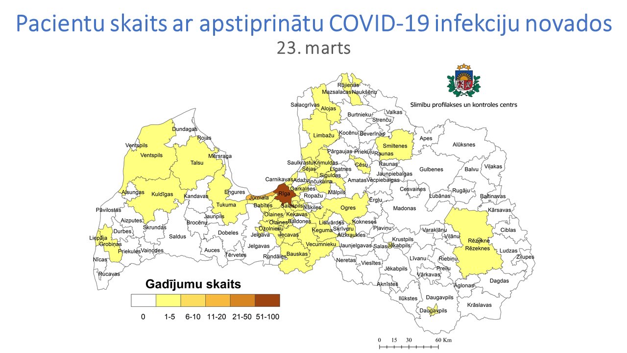 Arī Tukuma novadā saslimušie ar COVID-19 /Papildināts ar 25. marta karti/