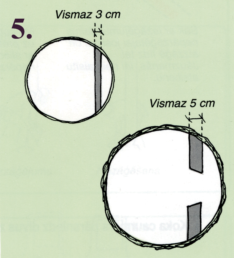 Parasti nepārzāģētajai josliņai jābūt vismaz 3 cm platai. Liela caurmēra stumbriem, kuriem vispirms jāizzāģē centrālā daļa no aizzāģējuma puses, šai josliņai jābūt vismaz 5 cm platai. (5. zīm.)