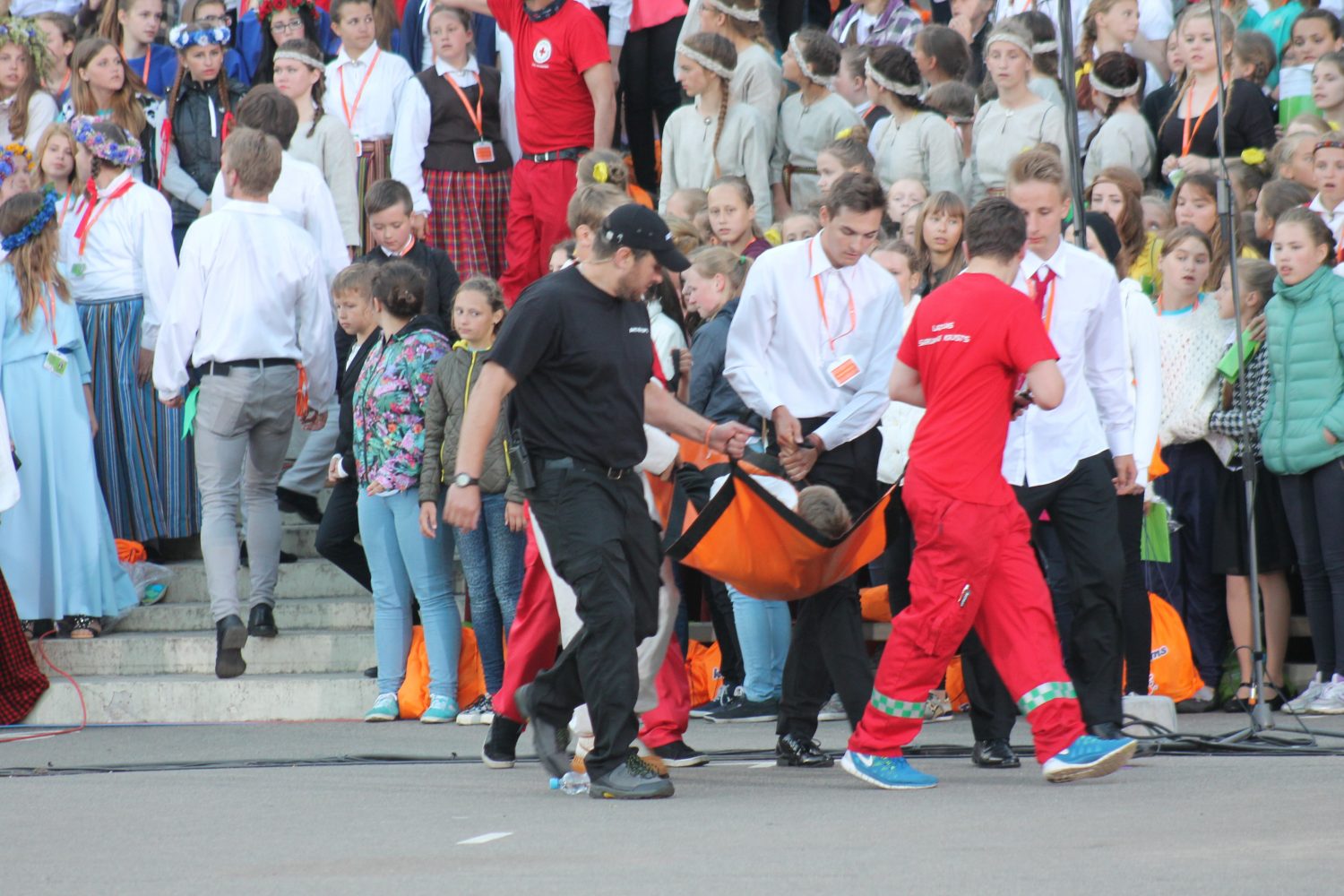 Svētku koordinatore Angelika Dembovska pastāstīja, ka no Tukuma Raiņa ģimnāzijas kora «Savējie» esot noģībusi viena meitene, bet nu viss esot kārtībā un meitene jūtoties labi.