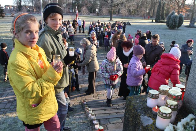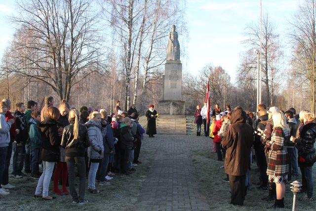 Šodien 11. novembrī, Džūkstes pamatskolas audzēkņi jau rīta agrumā, gājienā ar valsts karogu priekšgalā uz savu svētvietu devās. Paši džūkstenieki ir pārliecināti, ka viņu piemineklis tapis vienlaikus ar Brīvības pieminekli Rīgas centrā. Turklāt tas no abām pusēm skatāms un zvaigžņu urnā varoņu dvēseles sargā. Bērni aizdedza savā svētvietā svecītes un devās atpakaļ uz skolu