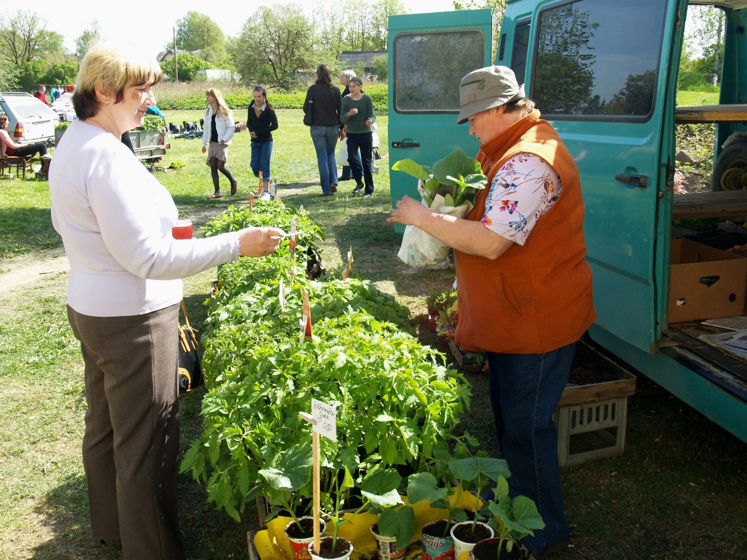 Jā, tirgotāju tiešām bija pamaz. Bez Marutas tantes, vēl divi tirgotāji no Dobeles – viens ar rožu stādiem, otrs ar plašu dārzeņu un puķu stādu klāstu, puķkope Zenta Plezere no Jaunpils ar gladiolu sīpoliem. Pārējie – jaunu un lietotu apģērbu tirgotāji.