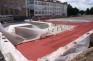 Tukuma domes galvenās arhitektes pienākumu izpildītāja Zane Skrūzkalne skaidroja, ka firma «Reaton», kas ir SIA «Šlokenbeka» apakšuzņēmēji, vispirms ieklāja īpašu ruļveida seguma materiālu un pēc tam to nokrāsoja. Lai krāsa nenosmērētu ēkas, tās nosegtas ar speciālu materiālu. Objektā nepieciešamas divas krāsu kārtas; patlaban nav zināms, kad tiks krāsota otra.