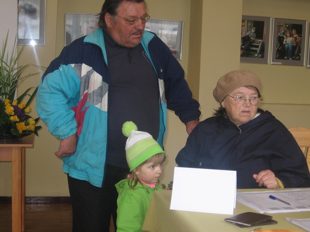 Kad atbraucām uz Raudas pansionātu, šeit jau vēlēšanu komisija strādāja. Nāca vēlētāji viens aiz otra. Daži bija sarūgtināti – gribot balsot par pansionāta direktoru, kurš ir tēvzemiešu sarakstā, bet viņiem neļaujot balsot, jo viņu dzīves vieta deklarēta Rīgā. Kāda kundzīte neapmierināta ar to, ka katram deputātu kandidātam nav pierakstīts, no kādas partijas viņš nāk. Viņa ļoti gribētu balsot par Neilanda kungu, bet, ja viņš ir Tautas partijā, tad gan nekādā ziņā nebalsos. Nu kā lai tagad to uzzina? Visiem citiem deputātu kandidātu sarakstiem ir tikai viena partija vai nosaukums, bet te veseli trīs. Un izrādās, ka veciem ļaudīm ir arī humora izjūta – kāda kundzīte saka: vai neredzi, ka tai listē ir tēvs, māte un dēls. Mūsējais ir tas dēls… Visi no sirds izsmejas, tomēr joks grūto izvēli vieglāku nedara.