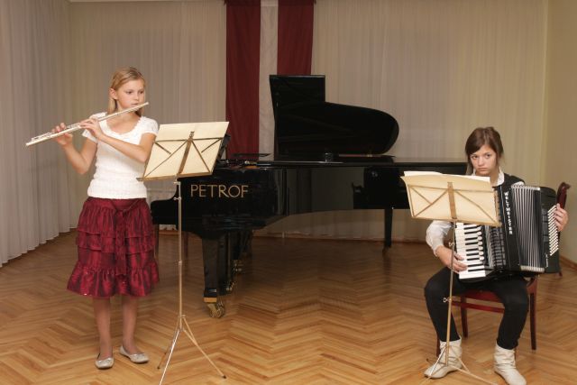 Ar mūzikas veltēm savus vecākus, pedagogus un visus pārējos sveica klavieru, akordeona, flautas, saksofona, klarnetes, tubas klases audzēkņi, audzēkņu kameransambļi un klarnešu kvartets, saksofonu ansamblis un koris. "Mēs gribam, lai mūsu skola vienmēr pastāvētu, lai pedagogus nenomāktu raizes par darba samazināšanu un finansējuma atņemšanu profesionālās ievirzes izglītībai. Mēs arī protestējām pret nepārdomātiem Kultūras ministrijas lēmumiem, kas paredzēs jau pēc 3. klases, "dalīt" bērnus talantīgajos un pārējos.