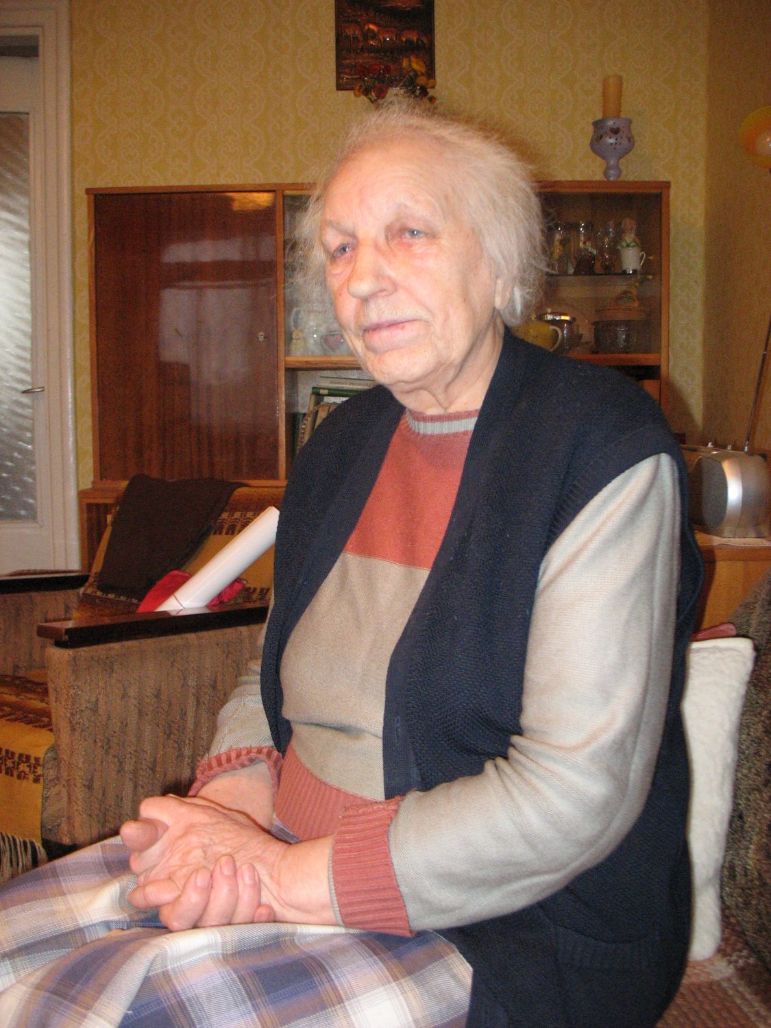 Ar redzēšanu gan esot problēmas – lasīt pagrūti, tikai ar vairojamo stiklu, arī pulksteni lāgā neredzot: "Tieši tāpēc vairs arī avīzīti nelasu, vienīgi programmu gribētos, lai zinātu, ko kurā brīdī televīzija rāda. Telefons arī man ir, tikai piezvanīt nevaru, jo ciparus neredzu. Reizēm noņemos pusstundu un – nekā."