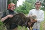 Ļaudis ērgli, pagalam novārgušu, uzgāja Tumes centrā. Putns vairs nejaudāja paiet un – kur nu vairs lidot. Atradēji ziņu atdeva «Mazveģu» saimniecei Dailai Ermanei, jo Daila, visa viņas ģimene ir draugos ar dzīvo radību. Ne vienreiz vien kādu glābuši, sētā patvērumu devuši. Arī šoreiz pirms trīs nedēļām aizbrauca un vārgo putniņu paņēma sētā. Vispirms, kamēr ērglis bija pavisam vārgs, turēja nelielā sprostā. Baroja ar zivīm, vistas gaļu. Nu putns ir atlabis. Patlaban mitinās pagraba telpā. Te tam ir iespēja spārnus vingrināt.