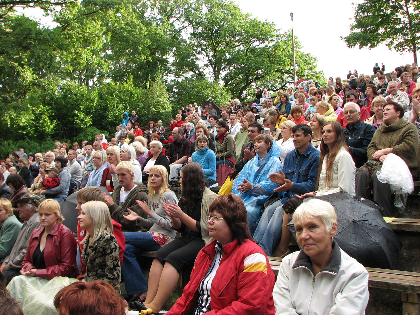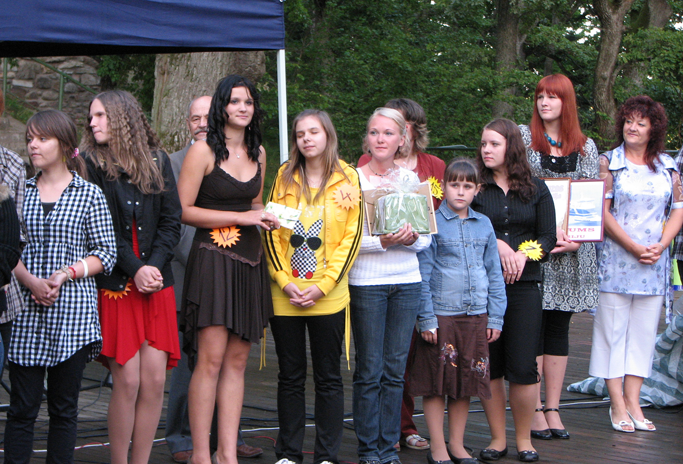 Pasākumā piedalījās Iluta un Meisija Maļinovskas, ilgadējais konkursants Kārlis Ķēniņš ar «Dzimtenes dziesmu», Laima Liepiņa un Liene Treikale, Madara Kārņupa un Ance Feldmane, Dita Vēver un roķīgais duets – Dita Immermane un Maija Klaumane, Viesturs Markovksis, kurš "gāja kost" jeb izpildīja dziesmu no «Reiganu» repertuāra, Lolita Lejiņa, Eka Svarkovska, Krista Jansone, Aiga Dūniņa, Juris Alksniņš – ar āriju itāļu mēlē, Maija Kūla, Ligita Bērziņa, Inga Maļinovska, kas, kā piesaucot to ar dziesmu «Vālodzīte», vienīgā uzstājās kārtīgas lietus gāzes laikā, Alda Jāne, Maruta Kraukle un Anita Geidāne, kas uzstājās pēdējā, noslēdzot koncertu ar baltu balonu pušķi, kas, dziesmai izskanot, aizlaidās debesīs.