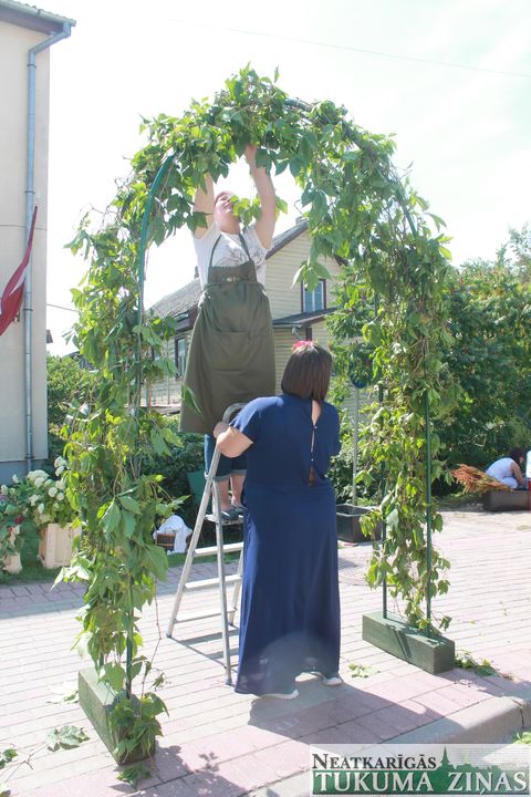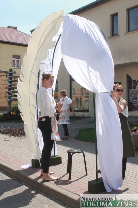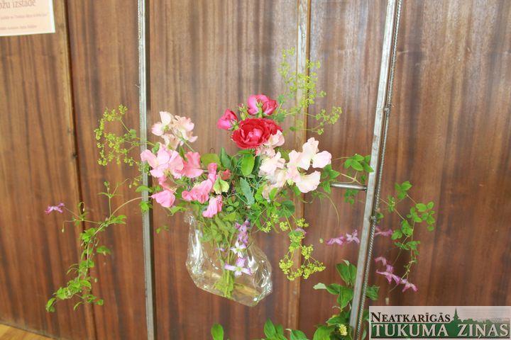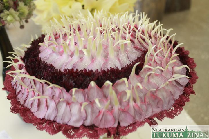 Tā tas iegājies gadiem – kamēr tukumnieki svin svētkus, tikmēr kultūras nama tradīciju zālē floristikas skolu dalībnieces veido ziedu pušķus un floristikas lieldarbus, lai pēc divu gadu intensīvām mācībām kārtotu skolas gala eksāmenus. Šogad savu meistarību rādīja floristikas meistardarbnīcas «ZieduLaiva» audzēknes Indra Jugāne un Līga Brakovska, kas gatavojās zeļļa pakāpei, un Elīna Zinoviča, ka vēlas iegūt meistara diplomu. Viņu darbus varēja redzēt uzreiz, ienākot kultūras namā – to vidū līgavu pušķi no smalkām puķītēm, lilijām un tā sauktais glamēlijas veida pušķis, veidots no neļķu ziedlapiņām. Turpat apskatāmi romiešu vainagi, kādi senāk darināti bērēm, kā arī istabas augu un sukulentu kompozīcijas stilizētos, ar mālu, ģipsi un betonu apdarinātos podos. Kursu dalībnieces atzina, ka šobrīd modē ir eikalipti, tā sauktās Ostina angļu rozes – tās biezās un pilnās; modē ir balti, rozā, violeti un citi maigie toņi, arī peonijas, kuras tagad var nopirkt visu gadu.