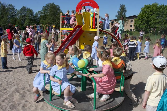 Svētki notika visas dienas garumā. To ieskaņā bērnudārza «Spārīte» audzēkņi svinīgi, kā tagad pieņemts, atklāja jauno rotaļu laukumu. Ar lentas griešanu un cienastiņu. Laukumu par 500 latu lielām Eiropas naudiņām izprojektēja sabiedriskās organizācijas «Dzintarkrasts» kundzes kopā ar Jolantu Kraukli.