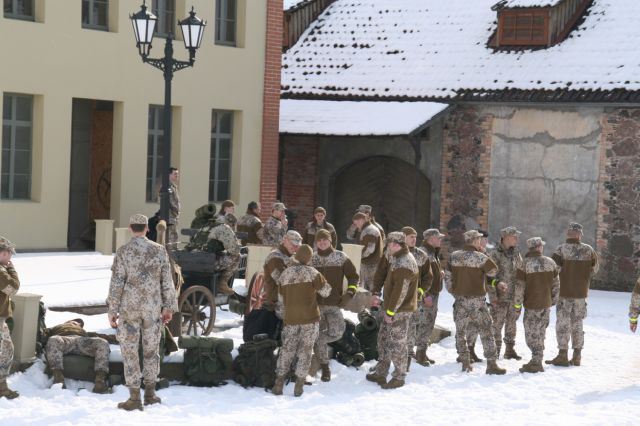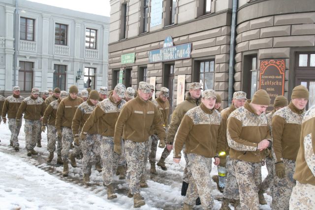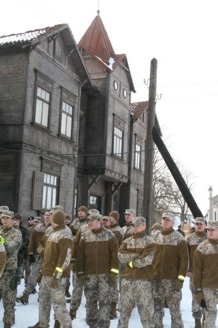 13 .martā Nacionālo bruņoto spēku Štāba bataljona karavīri pēc marša, kas sākās netālu no Slampes centra, apmeklēja kino pilsētiņu «Cinevilla».