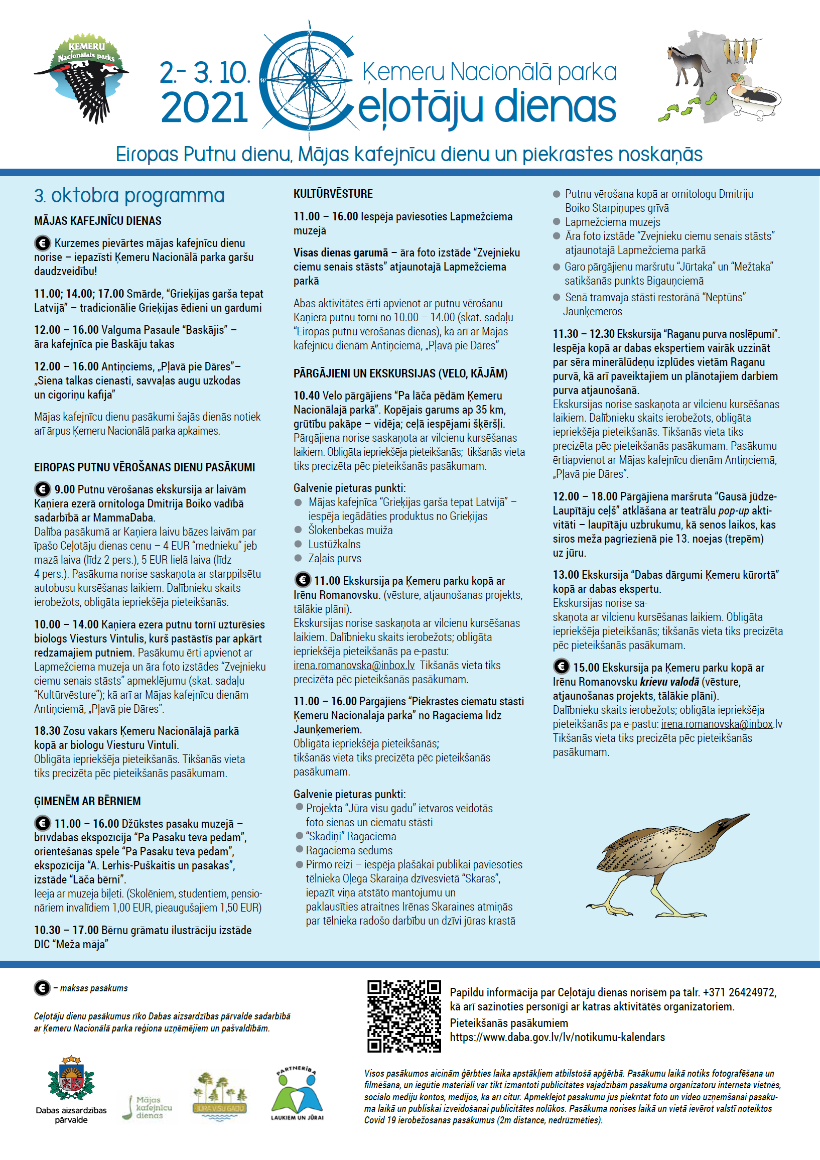 Ķemeru nacionālā parka Ceļotāju dienas programma – 3.oktobris