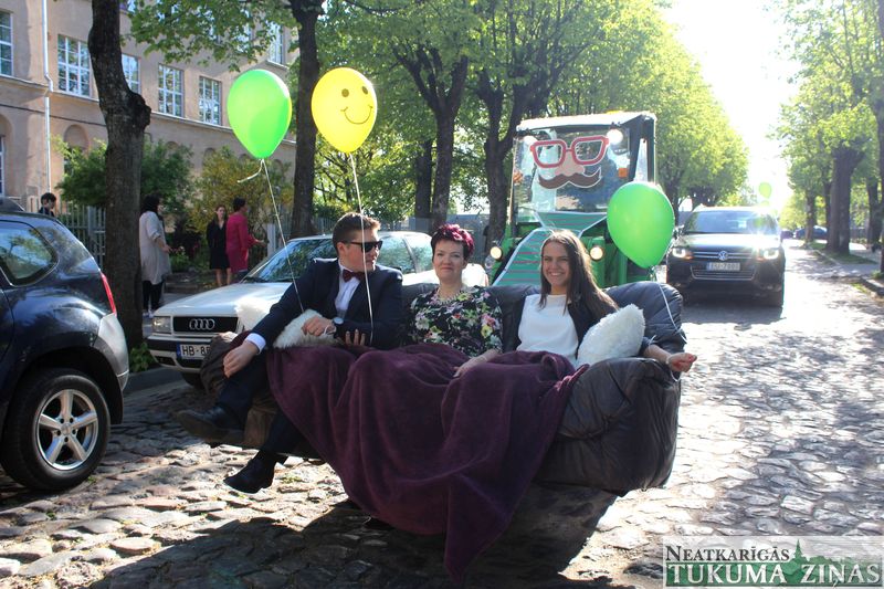 Jau tradicionāli šajā dienā topošie skolu beidzēji cenšas kādā interesantā veidā pārsteigt savus klases audzinātājus – gan ar izrotātām kāpņu telpām vai pagalmiem, gan ar īpaši izvēlētu un izpušķotu transporta līdzekli braucienam uz skolu. Tukumā, kā novērojām, dominēja 70. gadu stila automašīnas, taču bija arī pārsteigumi, piemēram, brauciens traktora vestā dīvānā…