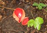 Aina Bērziņa no Cērkstes «Mežaiņiem» mūs aicināja apskatīties neparasti košas, sārtas sēnes, kas izaugušas lauku sētai tuvējā mežiņā. Līdzās zilajām vizbulītēm uz zemes redzamas arī nelielas, spilgtas kausveidīgas sēnītes, kas aug pa vienai vai nelielās grupās.