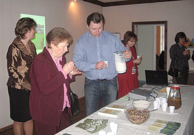 Selekcijas institūta darbinieki agronomiem bija sarūpējuši arī cienastu – maizīti, ceptu no kailgraudu miežiem. Bija iespējams baudīt auzu tēju, kuru pagatavo, vienu glāzi auzu graudu pārlejot ar litru ūdens un uz lēnas uguns vārot 15 minūtes (nokāš un dzer, pievienojot citrona šķēlīti un tējkaroti medus). Varēja pagaršot Dundagas piensaimnieka kefīru ar pūteļu miltiem, bet stendenieki piedāvāja kurzemnieku variantu – uzbriedinātus, kaltētus un samaltus kviešu, miežu un rudzu miltus. Tika piedāvāta arī kailo miežu saldie salāti: trīs glāzes vārītu graudu, 50 grami drupinātu valriekstu, 50 gr rozīņu, dzērvenes vai jāņogas (garšojām ar dzērvenēm un bija ļoti garšīgi!) un citronu sulā izšķīdinātas divas karotes medus. Visu sajauc ar labu olīveļļu.