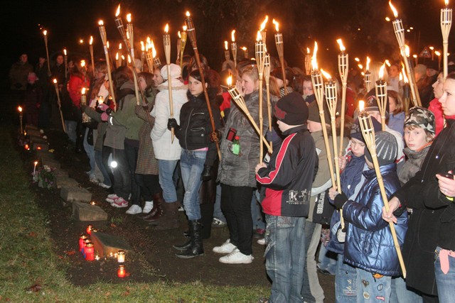 Lāčplēša dienā tukumnieki ar iedegtām lāpām rokās cauri visai pilsētai devās uz piemiņas brīdi Meža kapos.