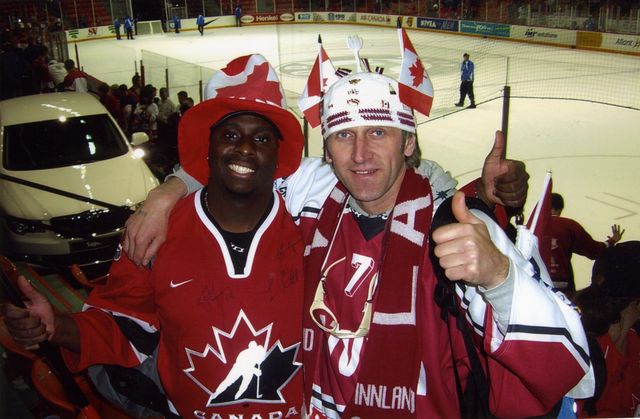 Pēc uzvaras pār Slovēniju (tā Latvijai deva vietu «A» grupā arī nākamgad), Latvijas fani noīrēja limuzīnu un vietējo bungu sitēju, lai stundu braukātu pa Halifaksu un izrādītu savu prieku. Mūs – līdzjutējus – ļoti daudz intervēja kanādiešu prese. Kāds no Halifaksas žurnālistiem reiz mums jautāja: "Cik Latvijā iedzīvotāju?" Kad uzzināja, ka vien 2,3 miljoni cilvēku un ka Kanādā ir ieradušies vairāk nekā 1200 fanu, viņš bija vienkārši šokēts. Jāpiebilst, ka Latvijas līdzjutēji Kanādā bija ieradušies viskuplākajā skaitā. Vismaz šajā ziņā mēs bijām 1. vietā.