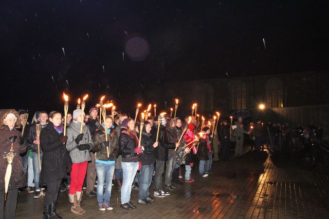 Lāpu gājiens sākās no Lestenes muižas vārtiem. To pavadīja Tukuma kultūras nama pūtēju orķestris diriģenta Māra Rozenberga vadībā. Piemiņas pasākumu atklāja Latvijas Nacionālo karavīru biedrības priekšsēdētājs Edgars Skreija. Ar klusuma brīdi godināja vairāk nekā tūkstoti kritušo, kas šeit atdusas. Jo īpaši godināja tos kritušos latviešu karavīrus, kas apbalvoti ar Lāčplēša Kara ordeni un piedalījās II Pasaules karā. Dieva vārdus sacīja Lestenes draudzes mācītājs Jānis Smilgainis. Klātesošos uzrunāja Tukuma novada domes priekšsēdētājs Juris Šulcs un citu sabiedrisku organizāciju pārstāvji. Muzicēja Jelgavas zemessargu ansamblis «Junda» un Dobeles zemessargu ansamblis. Pie karavīru atdusas vietām klātesošie iededza sveces.