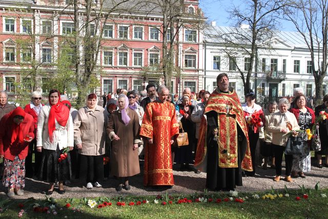 Pie mums Tukumā maz viņu atlicis. Tie, kuri karoja, viņu draugi, ģimenes locekļi 9. maijā, pulcējās Pils ielā karā kritušo apbedījuma vietā. Svētā Nikolaja pareizticīgo baznīcā notika aizlūgums par kritušajiem, visiem tiem, kuri izgāja cauri kara ellei. Tēvs Joans pateicās Dievam par to, ka tik ilgi virs zemes, vismaz mūsu pusē, karš nav bijis. Pēc tam tēvs Joans iznāca laukā pie ļaudīm. Viņu bija ap pāris simtu. Kapuvietā aizlūdza par kritušajiem. Vēlēja priecīgus svētkus un veselību.