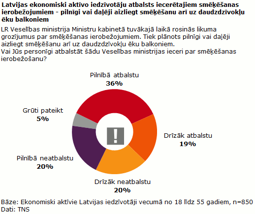 Pretējās domās ir 40% Latvijas ekonomiski aktīvo iedzīvotāju vecumā no 18 līdz 55 gadiem, kuri neatbalsta ieceri par smēķēšanas ierobežošanu arī uz daudzdzīvokļu ēku balkoniem (20% – pilnībā neatbalsta; 20% – drīzāk neatbalsta).