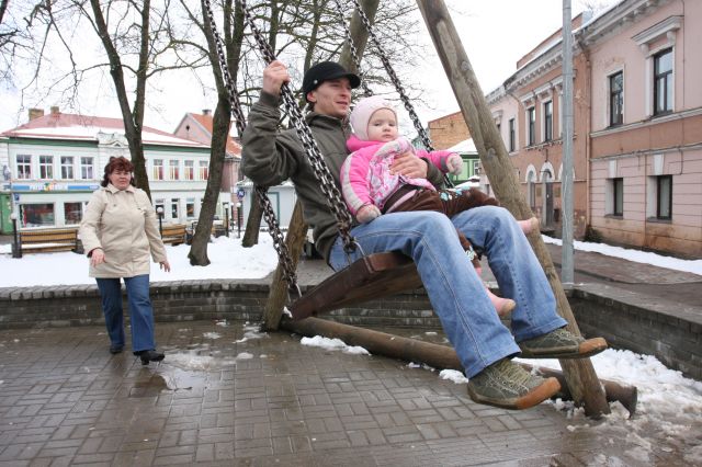 Pulkstenis rādīja rīta desmito stundu. Tukuma kultūras namam vēl visas durvis ciet. Vien skaņu kaste uz jumta trallināja jautru mūziciņu, modinot pilsētniekus Lieldienu rītā. Teju zvanīja arī baznīcu zvani. Bērni pamētāja pa sniega pinkucītim, pašūpojās šūpolēs laukumā pie Pils torņa.
