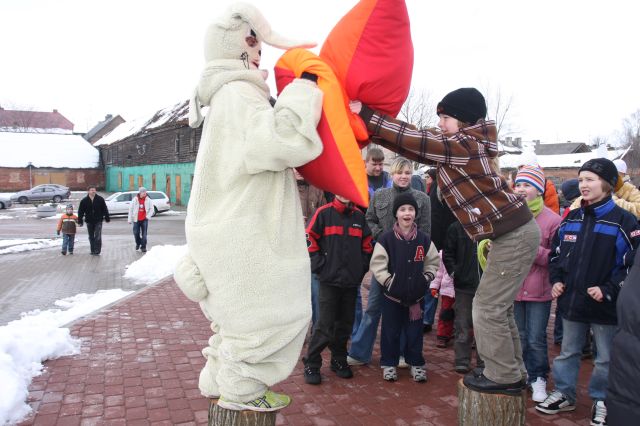 Savukārt pie Tukuma halles notika lustīgs jampadracis. Sita podus (īstus – māla), meta jēlas olas (viens met, otrs – ķer). 50 olas izmētāja! Zinātāji teica, ka no šīm olām sanāktu piecas tortes un n-tās omletes. Suņusieva Simba pienāca pie galda, kur metamās olas glabājās, un vienu apēda ar visām čaumalām… Bet ļaudis iesaistījās cīkstiņos ar spilveniem, svaru stieņa spiešanā guļus.