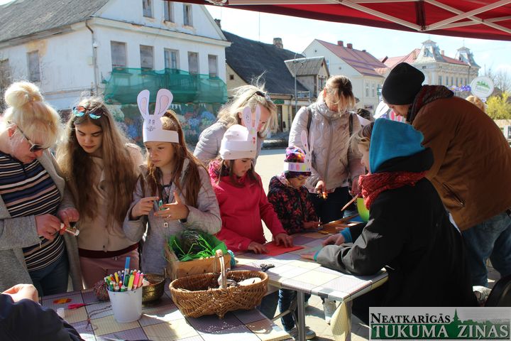 Savukārt Lieldienās Tukumā, Brīvības laukumā, ikvienam bija iespējams darboties radoši un pārtapt, piemēram, garausī zaķī, ko piedāvāja «Dabas mājas» aktīvisti, savukārt keramiķe Madara Atiķe aicināja izjust mālu, veidojot no tā dažādas figūras, savukārt biedrības «Ligzda» jaunieši piedāvāja apgūt visdažādākos roku darbus. Lai arī ik pēc mirkļa uzpūta vējš, kā novērojām, radošu darbošanos daudzi mazie un lielie uzskatīja par labāku nodarbi, nekā mājās sēdēšanu.