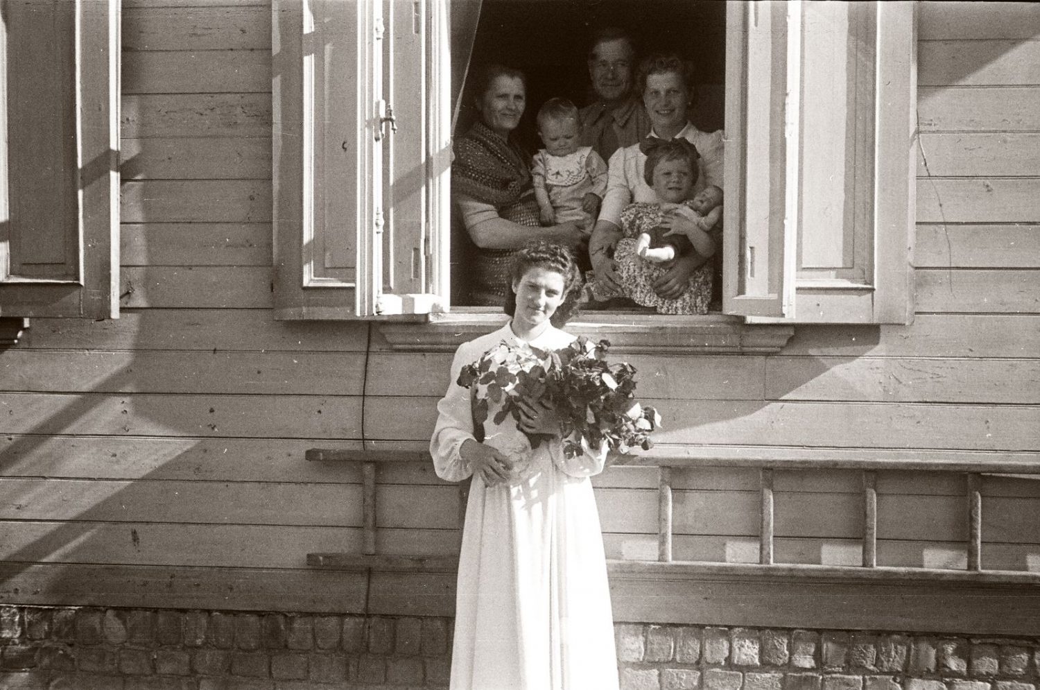 Foto vēsturnieks Pēteris Korsaks veido grāmatu un lūdz atsaukties cilvēkus, kuri varētu pazīt šo tukumnieku ģimeni. Iesvētības jaunajai dāmai, kas pirmā no labās ar bērniem. Lūgums zvanīt uz redakciju: 63125216. Foto – Gothards Grīnvalds (1942. vai 1943. gadā).