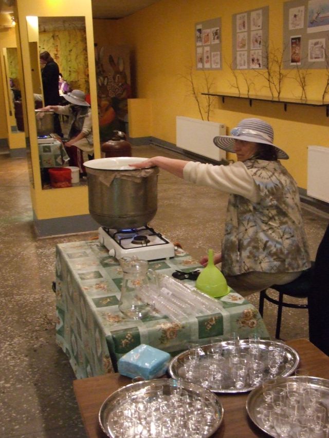 Atelpā pēc tango otrs garākais stāsts atkal pagrabstāva foajē pie dzimtenītes katla, kur uz paplātes jau desmitiem degustācijas glāzīšu. Lūk, saimnieces stāsts (viņa ļoti negribēja afišēties un piebilda, ka dzimtenīte pēdējo reizi tecināta pirms gadiem trīsdesmit; šo arodu viņai ierādījis kāds krievu tautības cilvēciņš): – Sajauc raugu ar cukuru (uz 15 l ūdens 8 kg cukura) un trīs nedēļas tur istabas temperatūrā – apmēram 20°C, tā, lai normāli rūgst. Tecināšanas kārtība – 20 litru katlā ielej 5 litrus uzraudzētās masas un tad vidū uz neliela koka vai metāla krāģīša (sietiņa) uzliek bļodiņu. Katla malas nosedz ar mitru lupatiņu. Vārīt raudzēto masu nedrīkst – tiklīdz uzsit pirmo burbuli, jātur uz mazas uguntiņas; redzēt, kas katlā notiek, nevar, tāpēc jājūt.