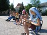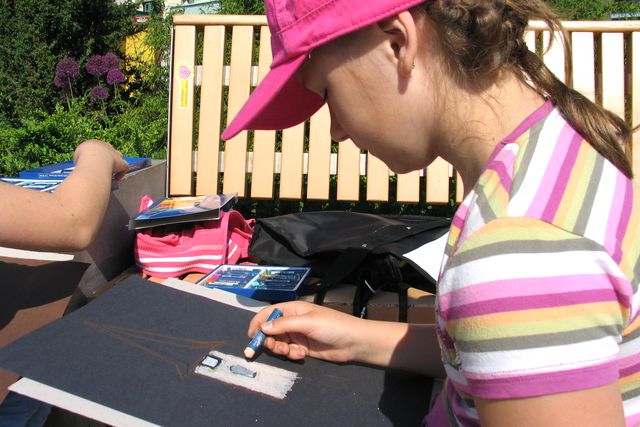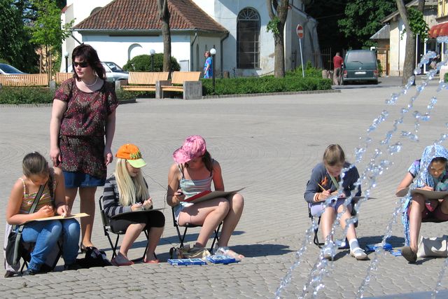Āra darbos jaunajiem māksliniekiem jāpierod ne vien pie spožās saules gaismas, kas brīžiem liek samiegt acis, bet arī pie tā, ka ik pa brīdim kāds garāmgājējs pār plecu ielūkojas vēl negatavajā darbā… Var notikt arī tā, ka labi izdomātais skats ar strūklaku spiestā kārtā jāpapildina ar cilvēkiem – īpaši jau tad, kad veldzes kārotāji prom nav dabonami…