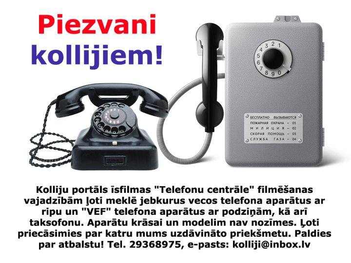 Meklē vēsturiskus telefonaparātus filmas uzņemšanai